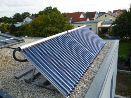 Solaranlagen für 2 - 8 Personen in Ein- und Mehrfamilienhäusern. Erhältlich im Paket mit einem Hochleistungs Frischwasser-Speicher: Ausgezeichnet als besonders verbraucherfreundliche und wirtschaftliche Lösung im Bereich Solarthermie. Einfacher Anschluss der kompletten Solaranlage an die bestehende Heizung Ihres Hauses. Wartungsfreundlich: Reines Wasser zirkuliert im System unsrer Röhrenkollektor Solaranlagen. Hocheffiziente Solartechnik für die Warmwasser-Bereitung und Heizungsunterstützung. Unter Umständen kein neuer Warmwasser-Speicher notwendig bei der direkten Anbindung der Solaranlage Thermoskannenprinzip: Das Vakuum ist vom Glaskörper eingeschlossen, wie bei einer Thermoskanne! Somit kann das Vakuum nicht entweichen, da es keine Dicht- und Verbindungsstellen gibt wie bei z.B. bei Glühbirnen. Es ist nichts verpresst verschweisst oder verklebt. Ein Material und keine Nahtstellen. |